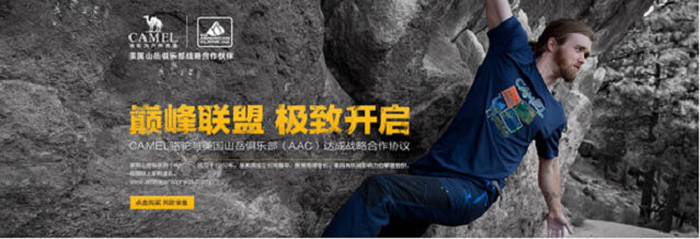 2016年,CAMEL骆驼成为美国山岳俱乐部(AAC)战略合作伙伴,联手打造系列定制装备,该俱乐部是美国成立时间最早,发展周期最长,最具有权威影响力的登山组织。
